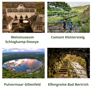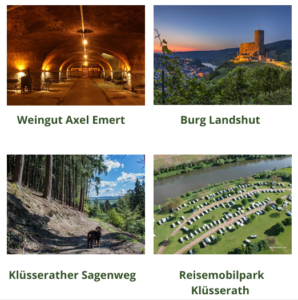 - In Klüsserath: Klüsserather Sagenweg (wandelroute door de wijngaarden en bossen)