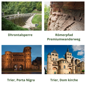 - In Trier: O.a. centrum, Dom kirche, Porta Nigra, Kaiserthermen en Amfitheater